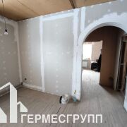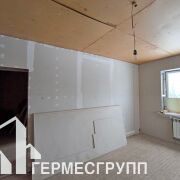 В доме расположены - три жилые комнаты, холл, кухня, котельная, совмещённый санузел, тамбур. Полы частично с подогревом. Стены из блока, крыша шифер, окна ПВХ. В доме разведена проводка, залита стяжка полов, подшиты потолки, стены оббиты гипсокартоном. Газ центральный, отопление газовое, вода -скважина, канализация местная.