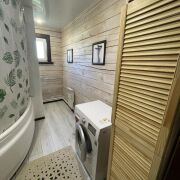 Внутреннее пространство дома грамотно организовано: на первом этаже расположены светлая и просторная кухня-гостиная с выходом на террасу, спальня, санузел, просторная веранда (16 м2) и прихожая. Второй этаж предоставляет возможность обустроить две отдельные спальни (ремонт в процессе). Потолки натяжные, полы – ламинат. В доме проведено электричество и установлено газовое отопление с котлом, который работает в связке с бойлером. Газ уже заведен в дом, водоснабжение обеспечивается скважиной с системой очистки воды, а канализация представлена двумя септиками (один для санузла, другой для кухни). На участке также выполнен дренаж.