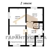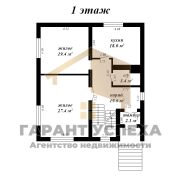 Первый этаж: кухня 18 кв. м, 2 жилые комнаты 19,4/27,4 кв. м. Совмещенный санузел.