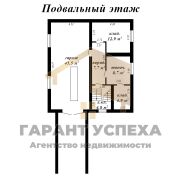 Цокольный этаж: гараж с ямой 45,5 кв. м. Также здесь топочная 8,74 кв. м, две кладовые 12,9 и 4,9 кв. м.