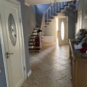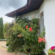 Стены из газосиликатных блоков, фасад оштукатурен и окрашен. Кровля – металлочерепица яркого оттенка, установлены окна ПВХ. Общая площадь 204 кв.м., жилая 73,9 кв.м. + 50 м.(мансардный этаж). На участке есть большая баня с огромным предбанником. По плану три просторные жилые комнаты размещены на разных уровнях, кухня-столовая 20,6 кв.м, имеются санузел и помещения входной группы.