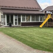 Дом построен кирпич + газобетон +металлочерепица. Гараж 7×15 на двое секционных ворот + 2 подсобных помещения. При гараже навес площадью 120м2 обшит полнотелым поликарбонатом толщиной 3мм темно коричневого цвета. Дом подключён к центральной канализационной магистрали. На участке растёт голубика около 300кустов . Есть тепличка размером 3.6×11 из поликарбоната. На участке есть скважина для полива.На втором этаже установлен кондиционер который работает на холод и обогрев в спальне площадью 30м2