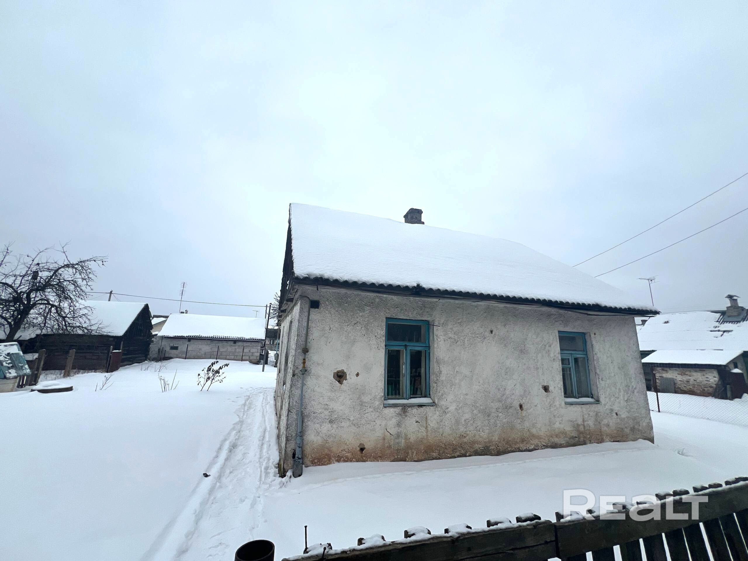 Дом шлакобетонный, крыша - шифер.