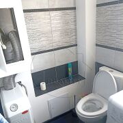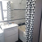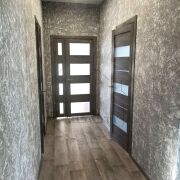 Окна - пвх, новые межкомнатные двери. Полы - ламинат ( в коридоре и спальне), кухня - линолеум. Стены оклеены обоями и декоративная штукатурка. Входная дверь - металлическая. Потолки - натяжные. Санузел совмещен, облицован современной плиткой, теплый пол.