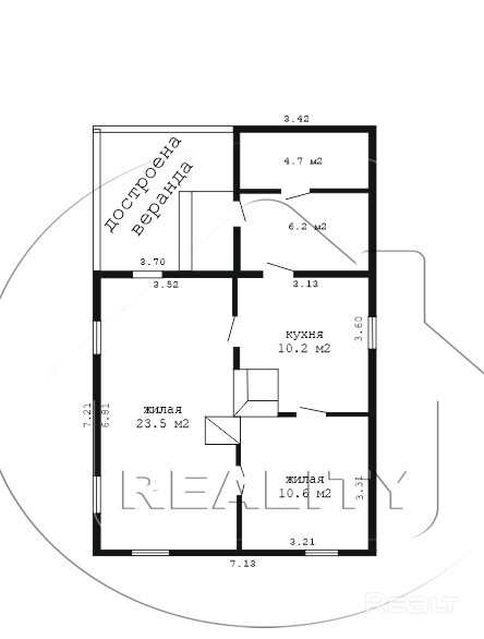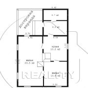 Общая площадь дома — 50 кв.м. В доме две комнаты, совмещённый санузел, рабочая печь. Проведены все коммуникации: газовое отопление, вода из собственной скважины (есть возможность подключения к центральному водопроводу). Дом полностью пригоден для проживания — можно заехать сразу и при желании постепенно провести реконструкцию.