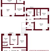 На участке 2 зарегистрированных дома: деревянный (жилой) общей площадью 57,5 кв.м., коробка под чистовую (введена в эксплуатацию) общей площадью 226 кв.м..