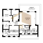 Общая площадь – 109 кв. м, жилая – 50,1 кв. м, кухня – 11,4 кв. м. Высота потолка – 2,9 м. Три жилые комнаты 11/13,8/15,8 кв. м. Высота потолка – 3 м. Большой погреб под котельной. Терраса 33,6 кв. м.