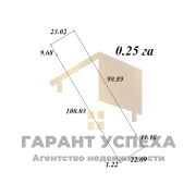 Земельный участок правильной формы размерами 23х110 м и площадью 25 соток огорожен со трёх сторон забором. Форма собственности земли - частная (приватизирован).