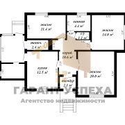 Общая площадь жилых помещений составляет 88,5 кв.м. В доме имеются три комнаты (жилая площадь 45,4 кв.м), кухня (12,5 кв.м), раздельный санузел, коридор, веранда, кладовая и котельная. В доме имеется второй выход через веранду на тыльную сторону участка.