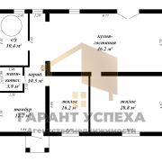 Общая площадь жилых помещений составляет 128,2 кв.м., жилая – 65 кв.м. В доме имеются столовая-гостиная площадью 46,2 кв.м свыходом на запроектированную терассу, две просторные жилые комнаты, совмещённый санузел под ванну (джакузи) и еще один в топочной, тамбур. Но это не всё, в доме запланирован огромный мансардный этаж со свободной планировкой.