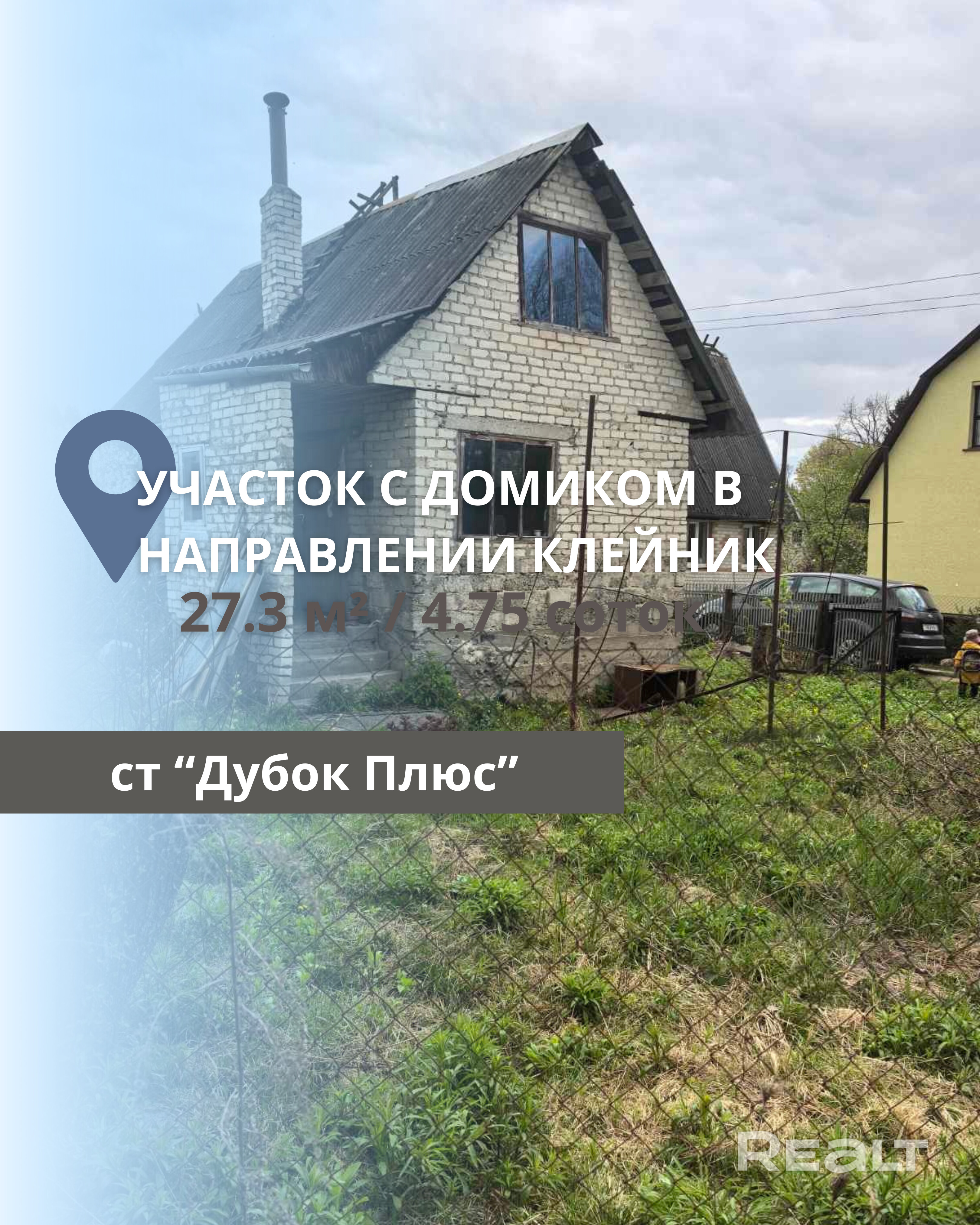 Продаётся участок с домиком в СТ Дубок Плюс, Клейниковский сельсовет. Участок площадью 4,75 соток, угловой. Общая площадь домика составляет 27,3 кв.м. На участке имеется электричество, сезонное водоснабжение, газ проходит по улице. Отличное место для отдыха или строительства нового дома!