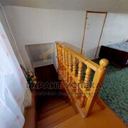 В доме уложены деревянные полы с настеленным ДВП, стены оклеены разноплановыми обоями, часть стены в комнате первого уровня обшита вагонкой.