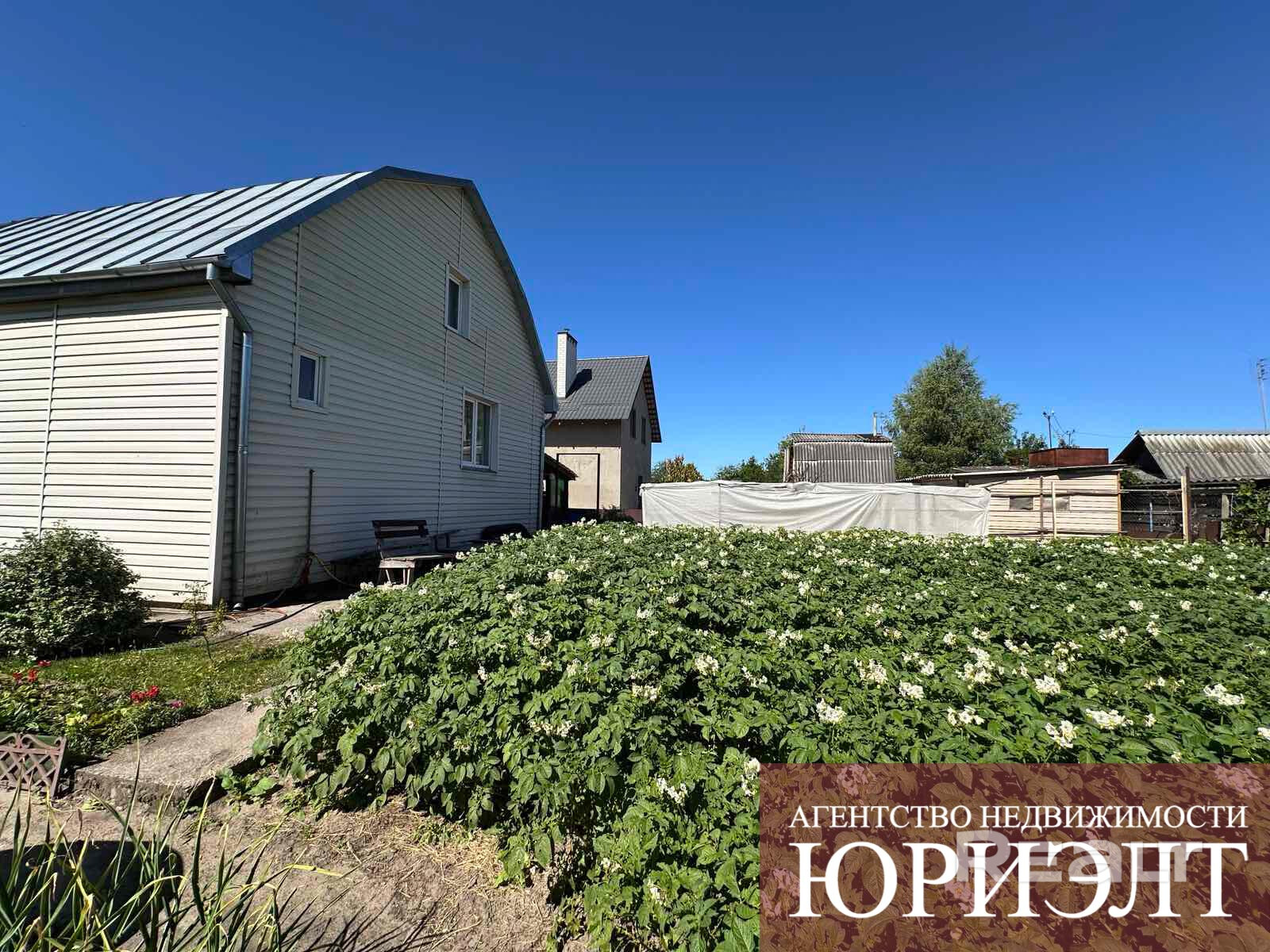 На участке расположен садовый домик 2000 года постройки, полностью пригодный для круглогодичного проживания. Фундамент — бетонный, стены — кирпичные, обшиты современным сайдингом, что придаёт строению эстетичный внешний вид и дополнительную теплоизоляцию. Внутренние перегородки выполнены из кирпича, перекрытия — деревянные. Крыша — чердачная, покрыта оцинкованной сталью.