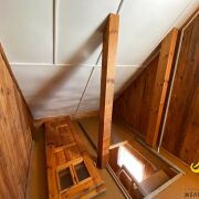 На 1 этаже расположены одна жилая комната площадью 18,6 м с функционирующим камином, кухня площадью 6,1 м с русской печью. На мансардном этаже одна жилая комната площадью 18, 9 м. Высота потолков 2,43 м.