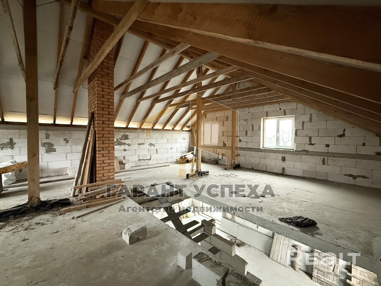 Здание имеет ленточный бетонный монолитный фундамент, материал стен – газосиликатные блоки 30 см, фальцевая кровля, межэтажные плиты перекрытия, окна – ПВХ с профилем Salamander.