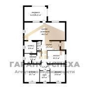 Общая площадь – 141,8 кв. м, жилая – 44,8 кв. м, кухня – 11,4 кв. м. Три жилые комнаты 13,3/15,7/15,8 кв. м. Гардероб 6,9 кв. м. Совмещенный санузел и гостевой туалет. Котельная-кладовая 8,6 кв. м. Высота потолка – 2,8 м.