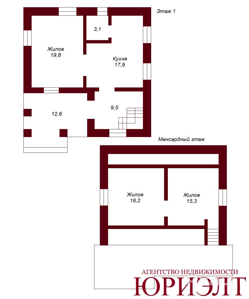Дом общей площадью около 91 м2 и имеет 1й и мансардный этажи, где располагаются 3 комнаты, просторная кухня 17,9 м2 и санузел. Построен из блока и бруса, облицован кирпичом, фундамент - ленточный монолитный, материал кровли - шифер.