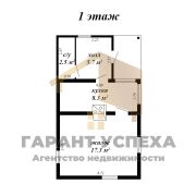 Общая площадь – 47,5 кв. м (первый этаж), жилая – 17,3 кв. м 1 этаж, 12 кв. м. – мансарда. Кухня 8,3 кв. м. Туалет и душ в доме.