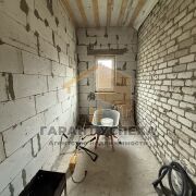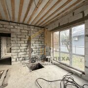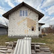 Площадь первого этажа 58.6 кв.м. + полноразмерная мансарда. Общая площадь 111 кв.м. Стены из газосиликатных блоков, толщиной 30 см, фасад под отделку. Фундамент - ленточный монолитный. Фундамент утеплен. Двускатная крыша. Кровля - металлочерепица. Скаты крыши подшиты досками и утеплены. Имеется крытая терраса, площадью 8 кв.м. В доме имеется погреб, площадью 5 кв.м.