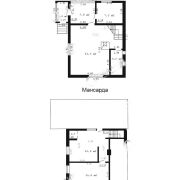 · 1 этаж: прихожая, кухня, большая гостиная с печью (отапливает дом + греет воду).