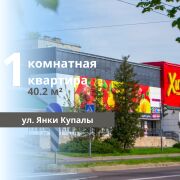 Продается 1-комнатная квартира по ул. Янки Купалы общей площадью 40,2 кв.м., из которых жилая площадь составляет 19,7 кв.м., а кухня — 7,2 кв.м. Квартира расположена на четвертом этаже пятиэтажного кирпичного дома, построенного в 1981 году. Внутри выполнен аккуратный ремонт, и квартира полностью готова к проживанию. Особенностью является большая лоджия с нишей, что добавляет дополнительное пространство. Удобное расположение в районе с развитой инфраструктурой обеспечивает близость к нескольким магазинам и торговым павильонам, школам, детским садам и остановкам всех видов общественного транспорта.