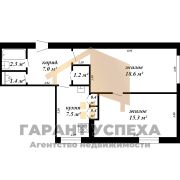 Общая площадь - 54,1 кв.м, две просторные жилые комнаты 18,6 и 15,3 кв.м, вместительная кухня - 7,5 кв.м. Раздельный санузел.