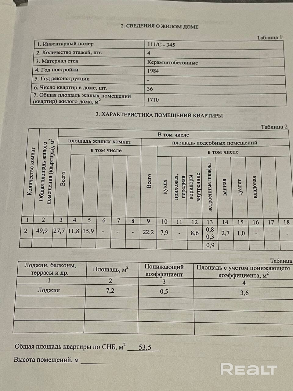 • Площадь жилая