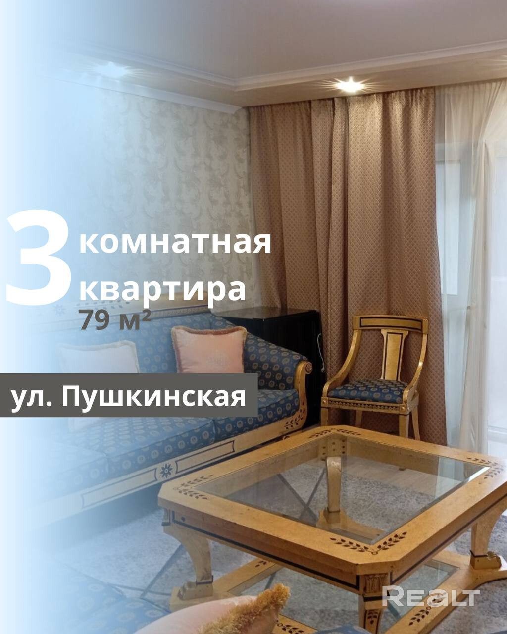 Продается квартира в тихом центре города с улучшенной планировкой, идеально подходящая для ценителей классической роскоши. 3-комнатная квартира по улице Пушкинская расположена на 4-этаже 9-этажного панельного дома 1993 года постройки. Общая площадь - 79 м2, жилая - 52 м2, кухня - 11.9 м2. Раздельный санузел, застекленная лоджия.