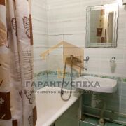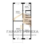 Квартира светлая, не угловая. Санузел облицован керамической плиткой, установлены счетчики. Стены и потолок выровнены, снежка. Пол - крашеный ДВП. Межкомнатные двери - ДСП, входная дверь - металлическая. Окна - ПВХ.