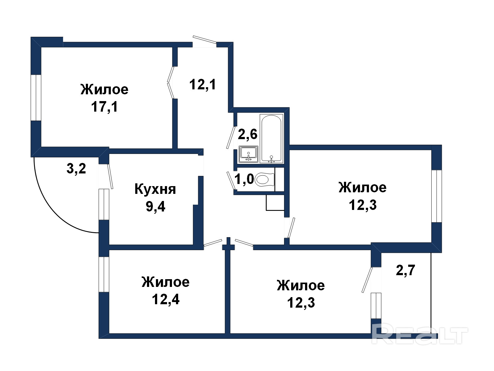 Четырехкомнатная квартира, Луцкая ул. - 250287