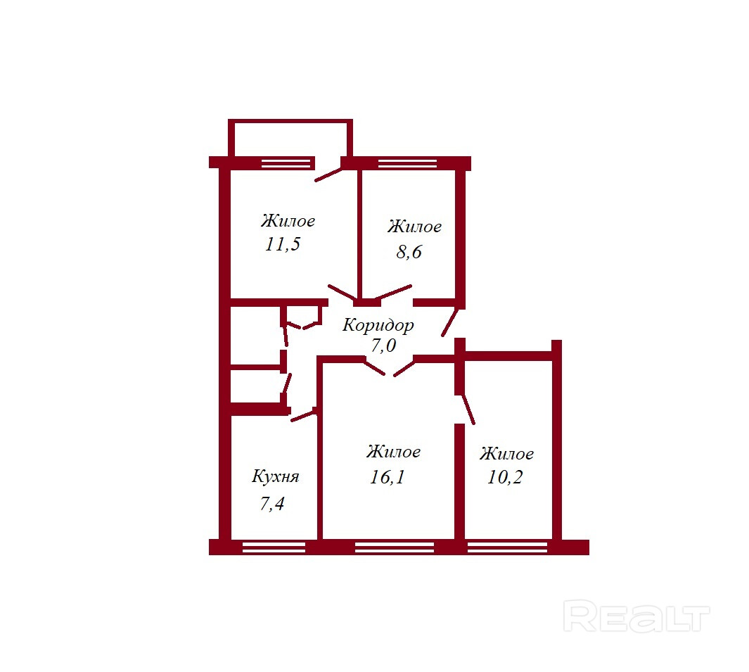 • Раздельных комнат