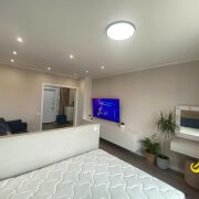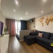 Межкомнатные двери – шпон. Входная дверь металлическая. Две лоджии застеклены и утеплены, на полу тёплый пол. Санузел раздельный(плитка современного образца), в санузле установлен умывальник и гигиенический душ. Новому владельцу в подарок остается кухонный гарнитур, встроенный шкаф купе. Выведен отдельно под бойлер выход. На каждую комнату и на аппаратуру свой диф автомат.