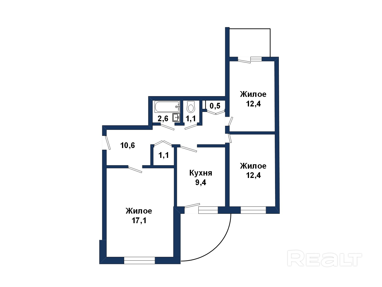 • Раздельных комнат