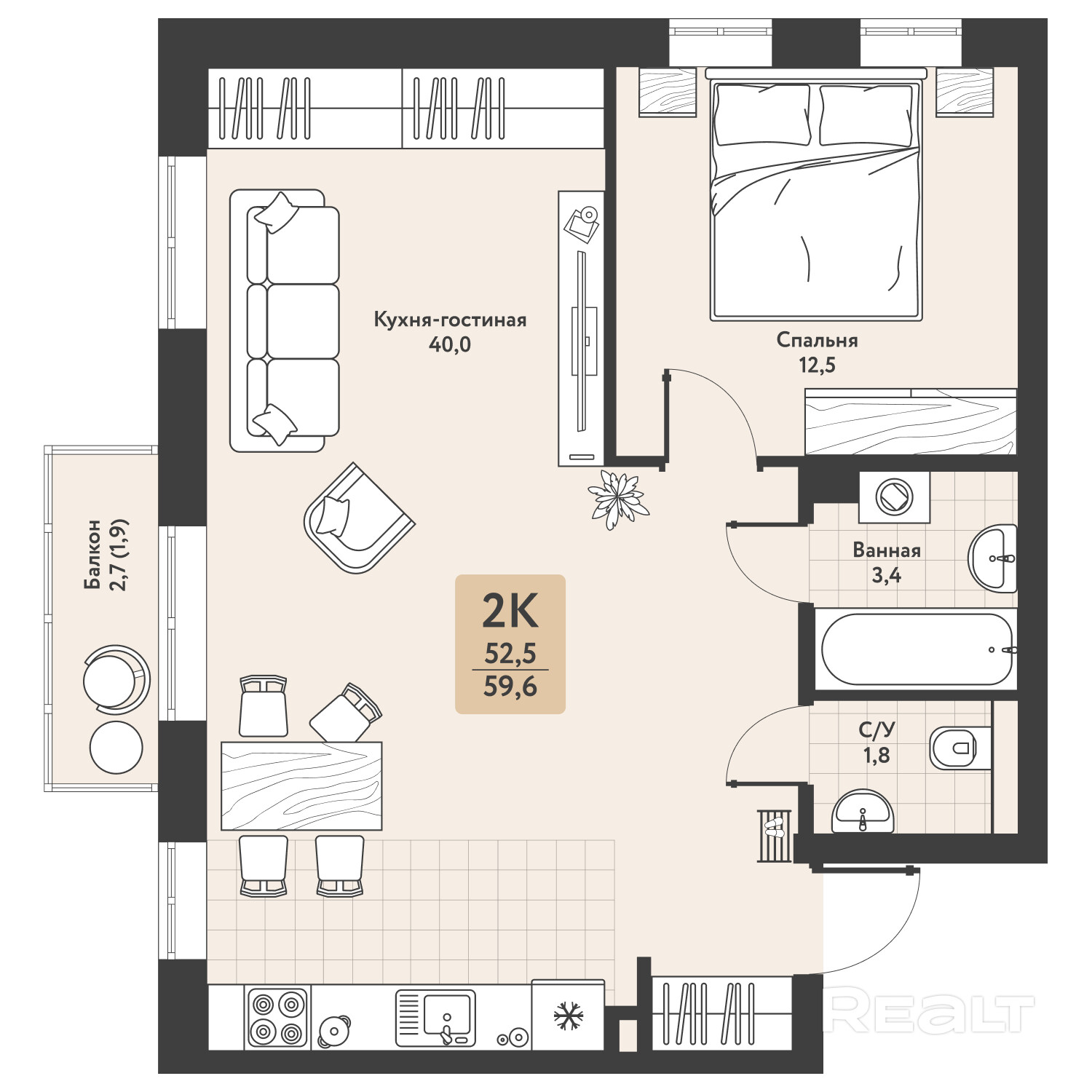 59.6 м²