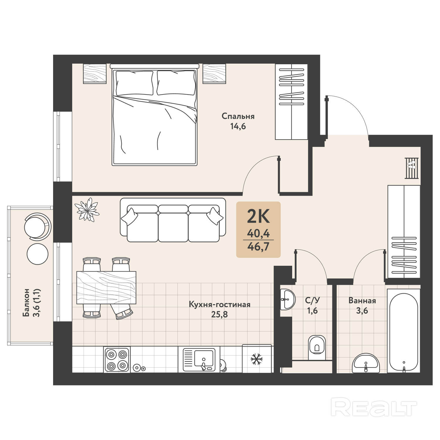 Продается квартира напрямую от застройщика площадью 46.7 квадратных метров, в «Дом на Машерова» Доступны банковские кредиты. Подробнее на сайте https://masherova.aironinvest.by/