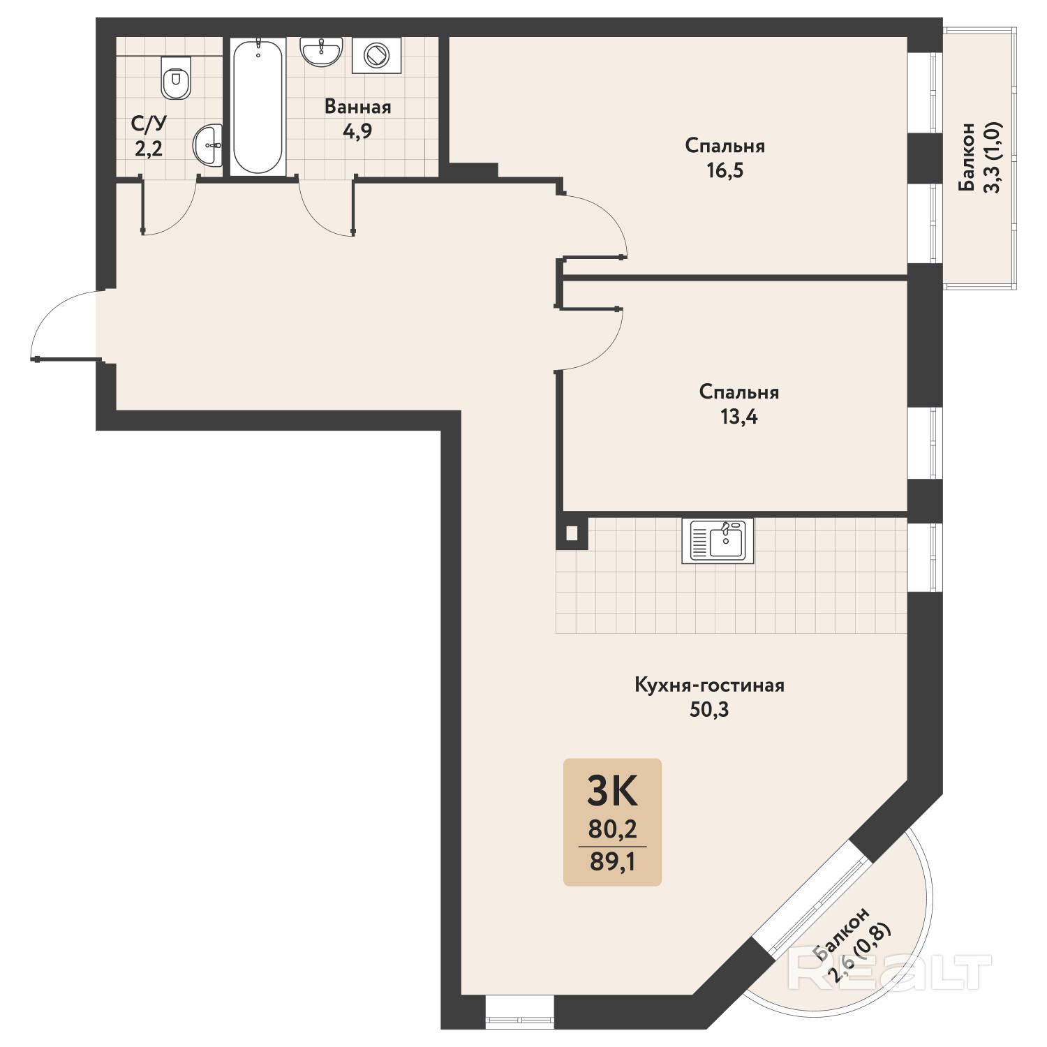 89.1 м²