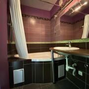 Санузел совмещенный, выполненный с использованием современной плитки Kerama Marazzi. Установлена качественная сантехника от Roca и Cersanit, все смесители - Grohe. Полотенцесушитель из нержавеющей стали, сантехника и трубы заменены, акриловая ванна добавляет комфорта. Входные двери и двери в санузел металлические PORTA (Польша).