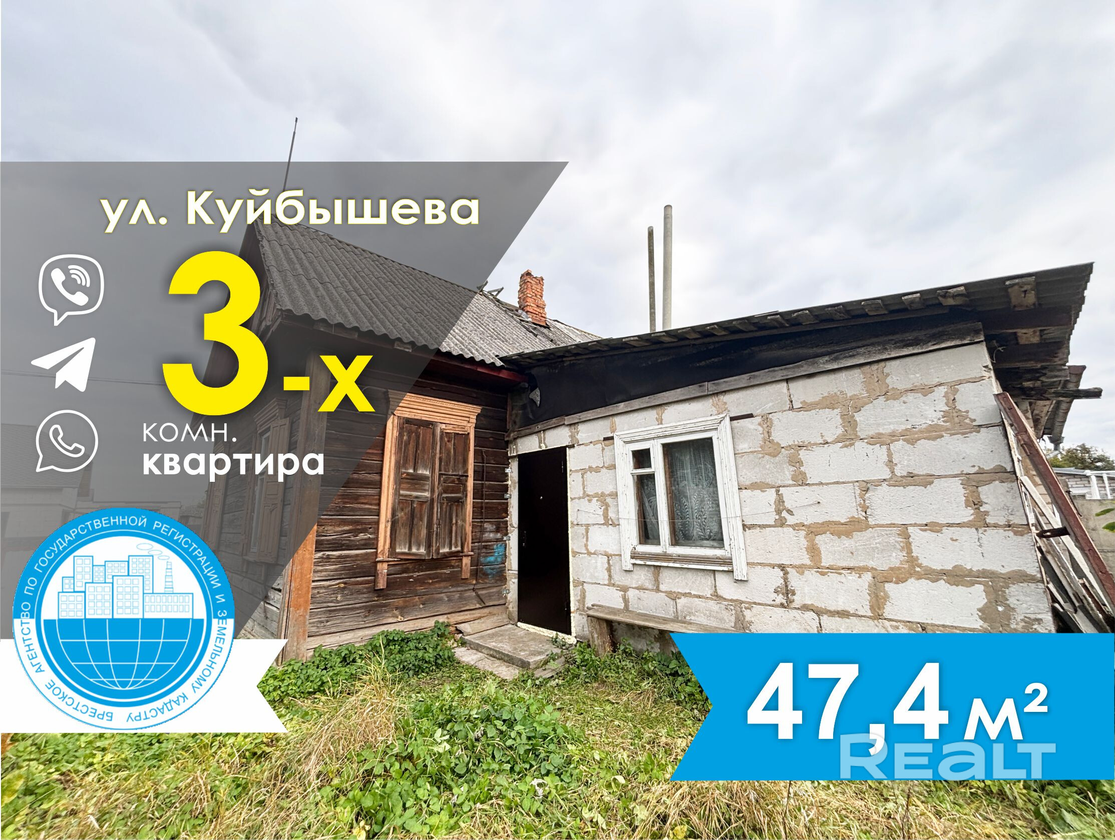 Продается трехкомнатная квартира в блокированном жилом доме по ул. Куйбышева (район детской больницы). Дом одноэтажный из бруса, с пристройкой из блоков. Крыша – шифер. Общая площадь – 47,4 кв.м, жилая – 28,3 кв.м, кухня – 5,2 кв.м. В квартире три жилые комнаты, кухня, пристройка, в которой есть возможность оборудовать санузел и организовать кухню. Отопление печное, водопровод центральный, есть подвод газа в квартиру.
