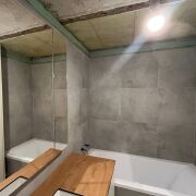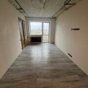 - Проведена новая проводка, залита стяжка, выровнены стены, оштукатурены и шпаклеваны.