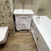 В квартире обновлен ремонт: заменена электропроводка, сделаны натяжные потолки, на полу в санузле плитка, в остальной части квартиры на полу ламинат на стяжке. Стены оклеены обоями. Санузел совмещен. В одной из комнат имеется выход на застекленную лоджию, из которой можно выйти на не застекленную лоджию.