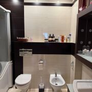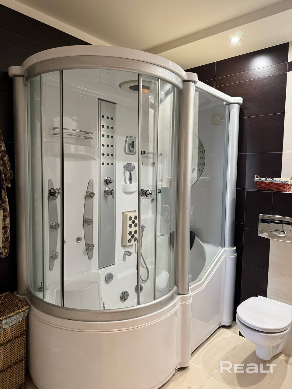 Совмещенный санузел оборудован комбинированной душевой кабиной с гидромассажем.