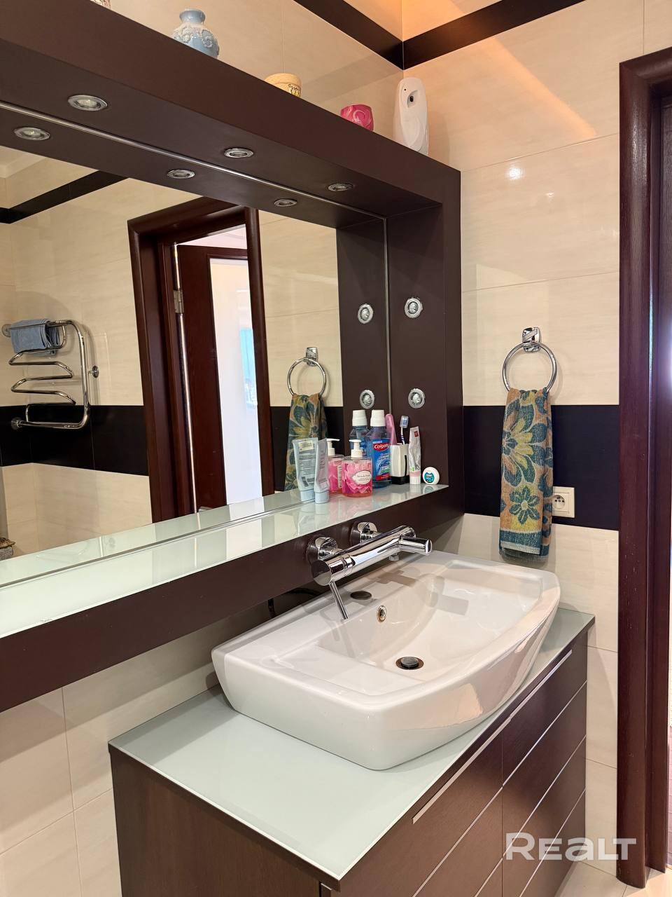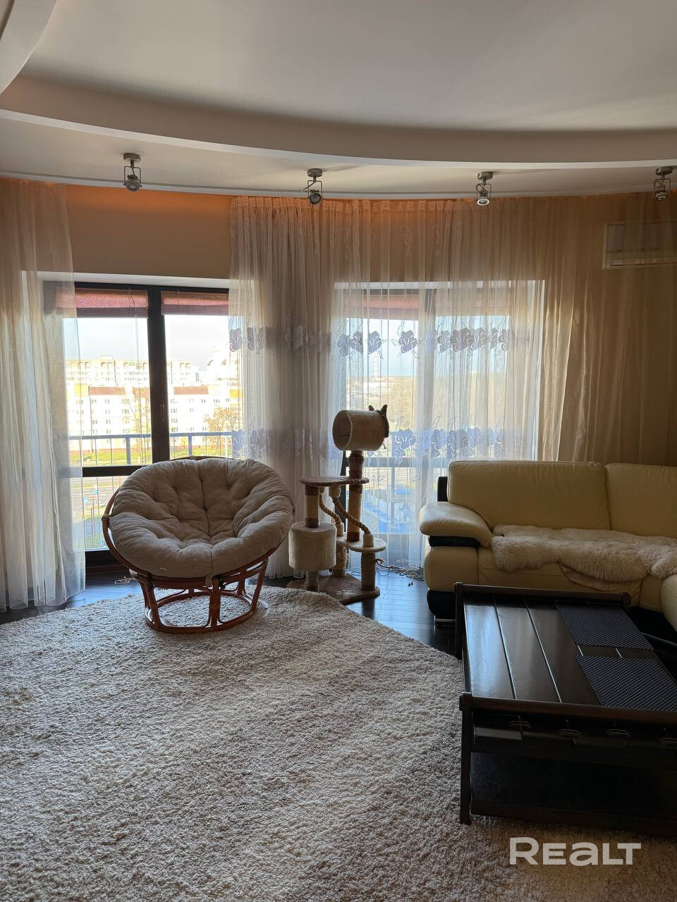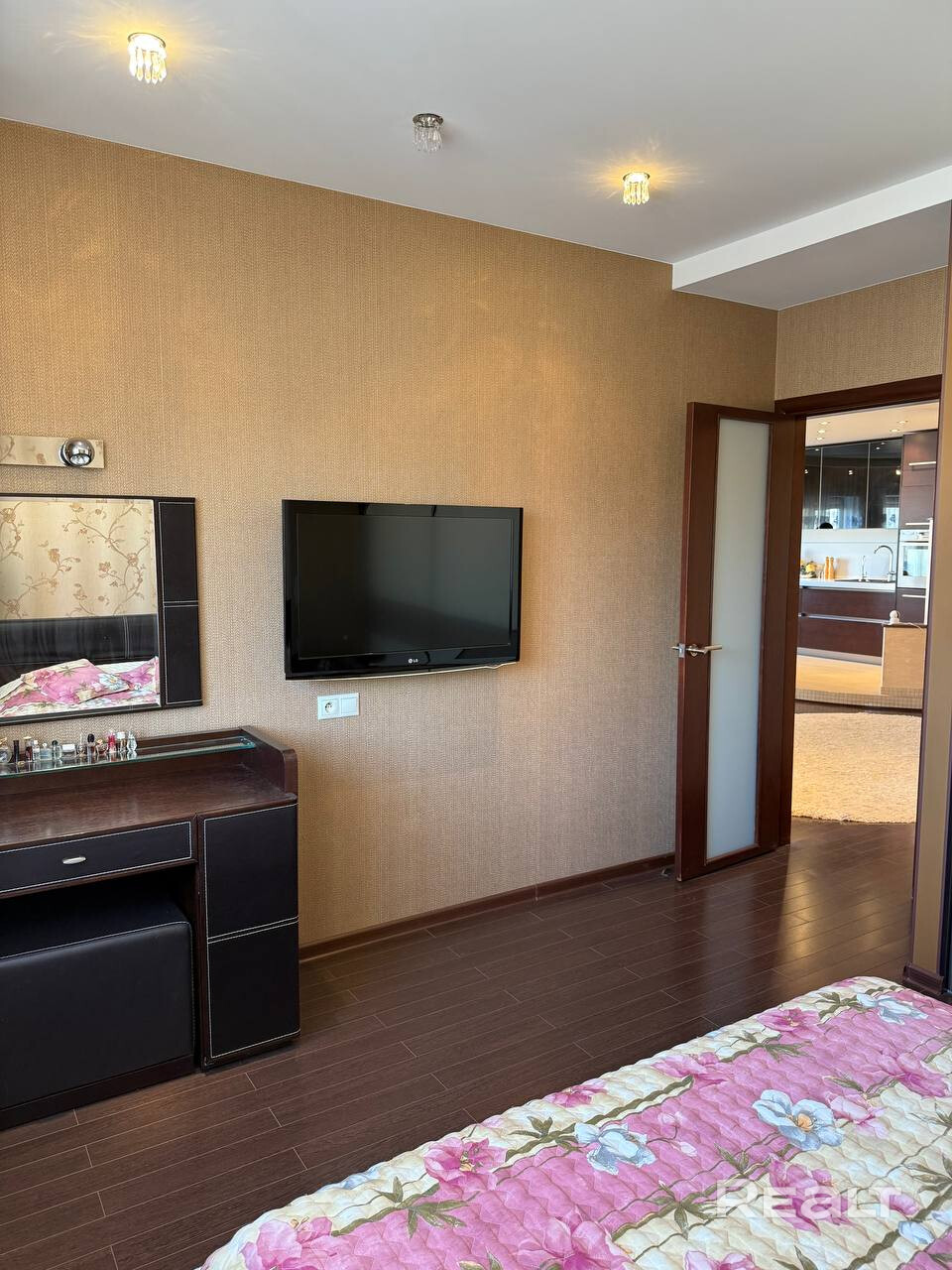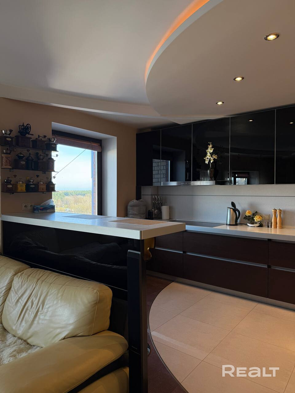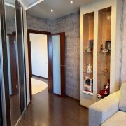 При входе в квартиру находится небольшая гардеробная, а также постирочная. Встроенные шкафы по всей квартире. Стильная функциональная кухня оснащена большим окном с видом на лес, что создает особенную атмосферу. Многоуровневые потолки разные световые сценарии, продуманное управление освещением. Французские окна в пол в гостиной открывают прекрасный вид на окружающую природу.