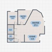 Площадь квартиры составляет 93.1 м2, с жилой зоной 56.2 м2 и кухней 12.5 м2.