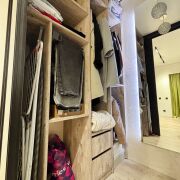 В квартире есть гардеробная-с установленной мебелью, отделена стеклянными дверьми.