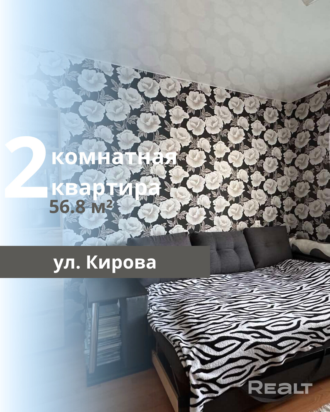 Продается двухкомнатная квартира в городе Жабинка, расположенная по улице Кирова. Общая площадь квартиры составляет 56,8 квадратных метра, из которых жилая площадь — 30 м2 , а кухня занимает 9,1 м2. Квартира находится на втором этаже четырехэтажного панельного дома, построенного в 1986 году. Помещение находится в аккуратном жилом состоянии и включает две изолированные комнаты, кухню, раздельный санузел и застекленную лоджию. Входная дверь металлическая, а межкомнатные двери выполнены из массива дерева. Окна в спальне и на кухне заменены на ПВХ, в гостиной установлено деревянное окно. Потолки оформлены натяжными покрытиями или окрашены, стены оклеены обоями. На полу в комнатах уложен ламинат, в коридоре и кухне — линолеум, а в санузле — плитка. При продаже остается кухонный гарнитур и два шкафа в коридоре; остальная мебель может быть оставлена по предварительной договоренности. Квартира расположена в районе с развитой инфраструктурой. В пяти минутах ходьбы находятся детский сад, школа, поликлиника, больница, супермаркет "Санта", различные торговые точки, банк, почта, кафе, аптека и пункт выдачи товаров Wildberries. Отличное транспортное сообщение с Брестом обеспечивается маршрутками и городским автобусом № 77 Жабинка - Брест, остановка которых расположена всего в 100 метрах от дома.