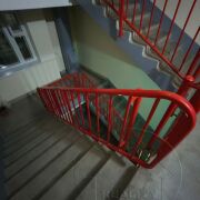 Спокойные соседи, чистый и аккуратный подъезд с широким лестничным маршем.