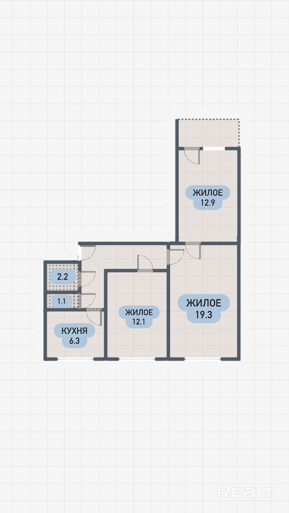 44.3 м²