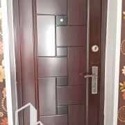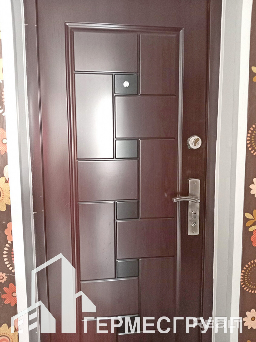 В квартире уложен ламинат и плитка, двери – массив и МДФ, входная – металлическая, натяжной потолок в комнате.