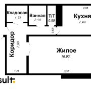 • Жилая комната: 16,9 м2 – пространство, наполненное светом и теплом, где каждый уголок продуман до мелочей.