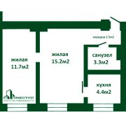 Общая площадь 37.1 кв.м., жилая 27 кв.м., кухня -4.4 кв.м.